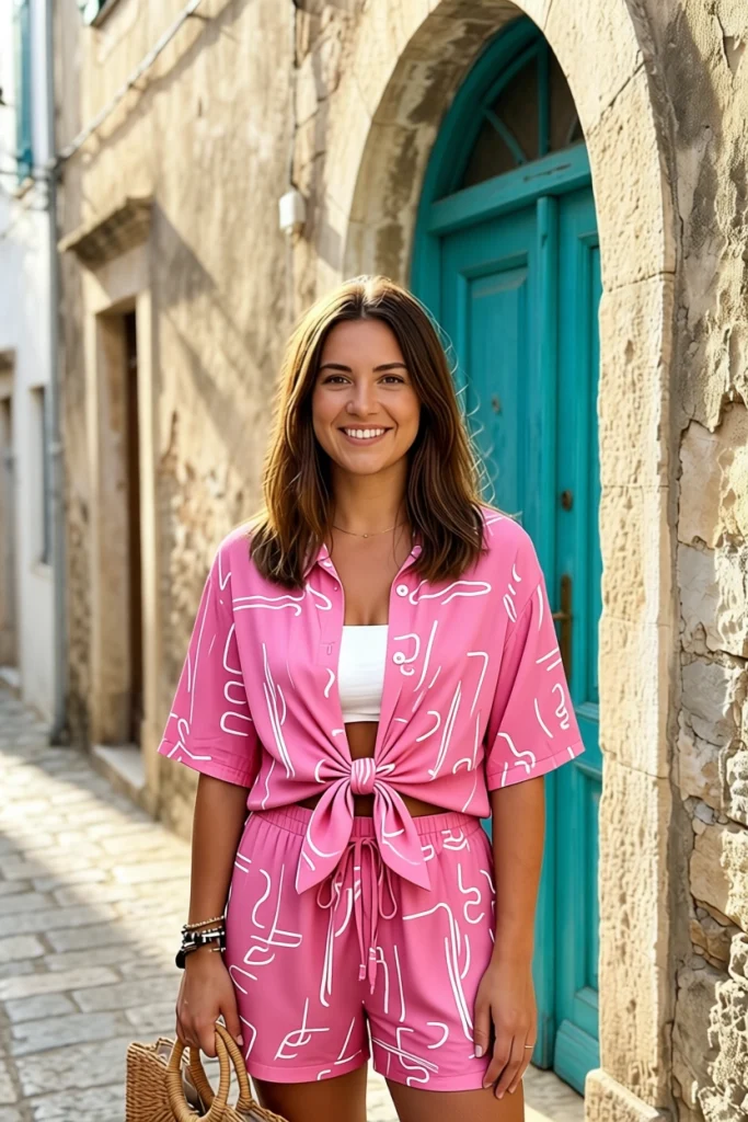 • The Romantic Sundress: Lightweight sundresses in eyelet or floral patterns mirror the bougainvillea spilling over stone archways.